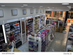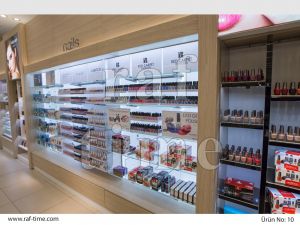 The range of cosmetics store design, perfumery and cosmetic sample store designs designed under the store shelf systems group is quite wide. We design different perfumery and cosmetic shelf systems according to the perfumery, cosmetics and personal care products to be exhibited. With the shelf systems developed by our company, lighting elements can be placed under each shelf and no additional wiring is required for this system. Each shelf can move independently. You can get all kinds of information from our design team for dozens of practical, stylish and aesthetic solutions that we can offer for multi-shelf cosmetic products. You can see our cosmetic store design examples below. You can contact us for a special design for your cosmetics store.